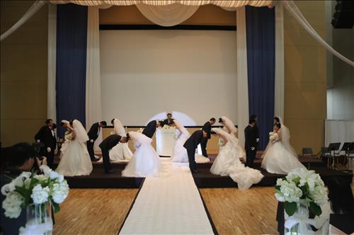 삼성전자는 수원시에서 선정해 준 다문화·저소득 부부 9쌍을 위해 수원사업장 디지털시티 내 디지털 홀을 예식장으로 단장했다.