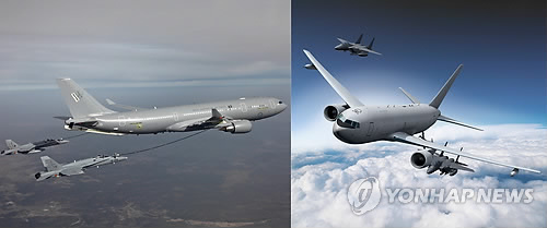 방사청은 이달 말까지 가격입찰을 끝내고 5월 중 종합평가를 거쳐 6월에는 기종 선정과 함께 계약을 체결한다는 계획이다. 공중급유기는 사업비 1조4천880억원을투입해 2018년 2대, 2019년 2대 등 4대가 도입된다.