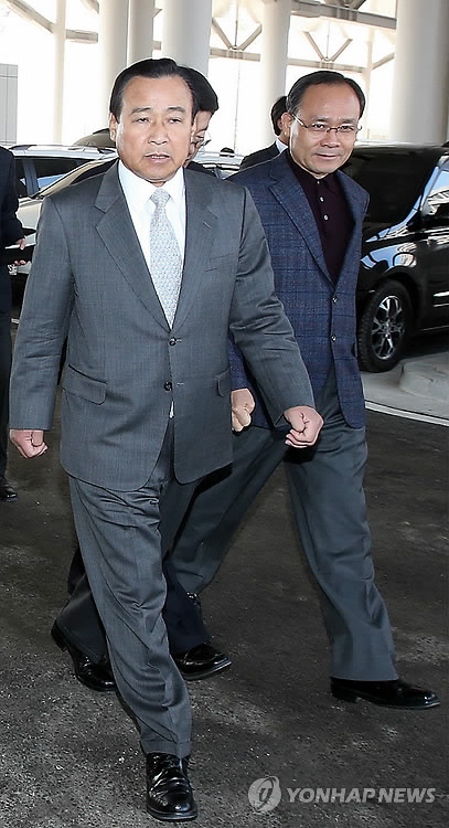 | △ 이완구 총리와 성완종 전 경남기업 회장 (서울=연합뉴스) 성완종 전 경남기업 회장이 지난 2013년 국회의원 재선거에 출마한 이완구 국무총리에게 현금 3천만원을 건넸다는 보도와 관련 이 총리가 14일 오전 국무회의 주재를 위해 정부서울청사로 출근하며 보도 내용을 부인했다. 2013년 12월 3일 이완구 국무총리가 새누리당 세종시 지원 특위 위원장이었던 시절 성완종 당시 의원과 정부세종청사를 방문해 입주를 앞둔 2단계 공사현장을 둘러보고 있다. 2015.4.14 << 연합뉴스 DB >> photo@yna.co.kr |