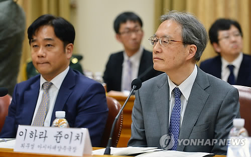 | △ 발언듣는 일본 측 이하라 수석대표 (서울=연합뉴스) 황광모 기자 = 한·일 양국이 5년만에 안보협의회를 개최했다. 14일 오후 서울 도렴동 외교부 청사에서 열린 제10차 한·일 안보정책협의회에서 일본측 수석대표인 이하라 준이치 일본 외무성 아시아대양주 국장(오른쪽)이 한국 측 수석대표인 이상덕 외교부 동북아 국장의 모두 발언을 듣고 있다. |