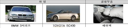 BMW 3시리즈·도요타 SC430 에어백 결함 리콜 재통지