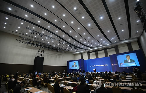 | △ 세계물포럼 국회의원 과정 세션 (경주=연합뉴스) 한종찬 기자 = 15일 오전 경주 HICO에서 2015 대구·경북 세계물포럼 정치적 과정 국회의원 과정 세션이 열리고 있다. 2015.4.15 saba@yna.co.kr |