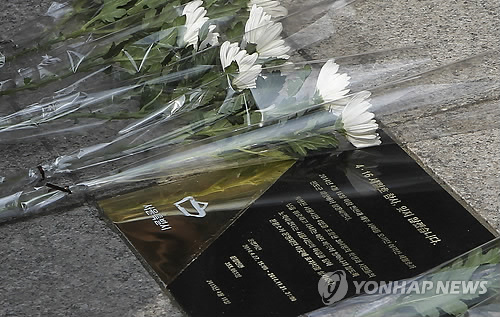 | △ 세월호 합동 분향소 표지석에 놓인 국화 (서울=연합뉴스) 이승민 기자 = 15일 오전 서울광장에 설치된 세월호 합동분향소 표지석에 박원순 시장을 비롯한 서울시 직원들이 헌화한 국화가 놓여있다. 서울시는 세월호 참사 1주기를 맞아 전 직원이 세월호 희생자를 추모하고 안전한 서울을 만들겠다는 다짐을 담아 합동분향소가 설치됐던 자리에 표지석을 설치했다. logos@yna.co.kr |