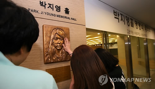 추모제는 박지영 홀 입구에 설치된 박씨의 얼굴을 새긴 부조 동판에 헌화, 희생자들에 대한 묵념, 추모사, 박지영 봉사장학금 수여, 희생과 봉사정신에 대한 강연 순으로 진행됐다.