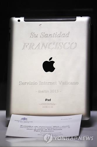 뒷면에 교황의 이름이 새겨지고 교황청의 인증서가 첨부된 이 아이패드는 교황이 우루과이 신부 곤살로 아에밀리우스에게 "좋은 일에 쓰라"며 선물로 준 것이다.