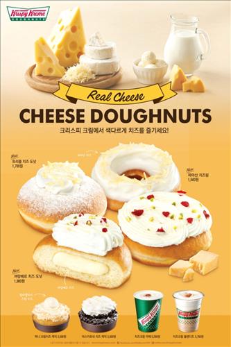 (서울=연합뉴스) 고유선 기자 = 크리스피 크림 도넛은 치즈를 활용한 도넛과 음료수 등 '리얼 치즈' 7종을 5월 31일까지 한정 판매한다고 15일 밝혔다.