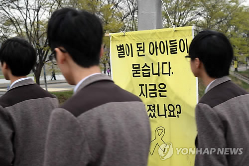 (안산=연합뉴스) 이복한 기자 = "하늘의 별이된 아들·딸들아 지켜주지 못해서 미안해 잊지 않을게."