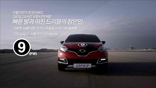 르노삼성은 자사 페이스북 등 SNS는 물론 삼성역 지하철 역에 마련된 디지털 미디어 터널(DMT)에 경쟁차종을 도발하는 듯한 QM3 영상을 개재했다. 영상 속에서 QM3 차량들은 축구 경기를 준비하는 듯 하나의 팀으로 구성돼 개인기를 선보였고, 어떤 차종이든 '단 1리터의 연료로' 붙어보자며 자신감을 드러내고 있다.