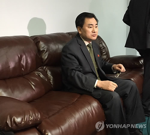 | △ North Korea’s deputy permanent representative to the United Nations, An Myong Hun, waits to speak to reporters at North Korea’s U.N. mission in New York, Wednesday April 8, 2015. Hun said Mexico has "forcibly detained" one of its ships months after it ran aground off Mexico's Gulf coast and that his country will take unspecified "necessary measures to make the ship leave immediately." An Myong Hun said the ship, the Mu Du Bong, was not carrying anything prohibited by U.N. sanctions and that more than 50 crew remain on board. (AP Photo/Cara Anna) |