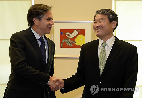 | △ 토니 블링큰 미 국무부 부장관과 조태용 외교부 1차관 (EPA=연합뉴스) |