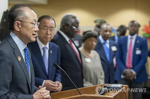 AP, AFP 통신 등에 따르면 김용 세계은행 총재는 이날 미국 워싱턴에서 반기문 유엔 사무총장, 엘렌 존슨 설리프 라이베리아 대통령, 알파 콘데 기니 대통령, 어니스트 바이 코로마 시에라리온 대통령 등과 만난 자리에서 이같이 밝혔다.