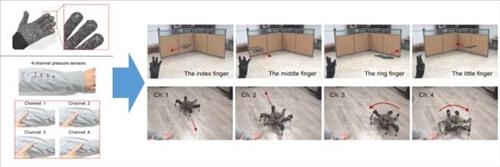 연구진은 이 스마트 섬유 센서를 장갑에 적용해 무인기(드론)을 무선 조종할 수 있는 드론 조종 장갑을 제작, 시연에 성공했다.