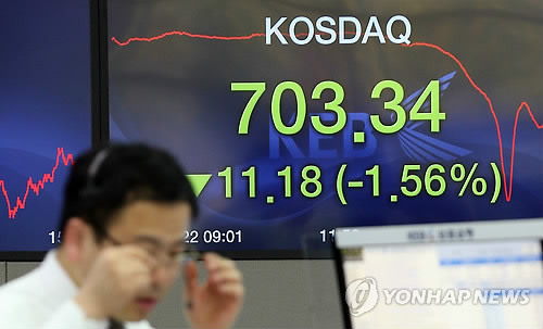 이후 시장이 다소 안정을 되찾으며 지수는 전날보다 11.18포인트(1.56%) 내린 703.34로 장을 마쳤다.
