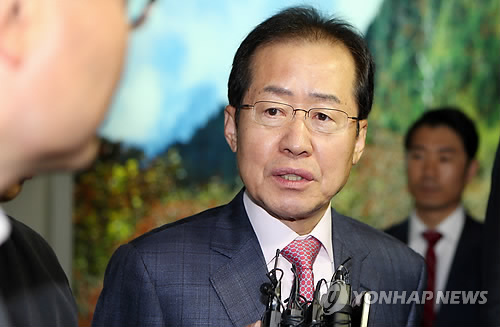 | △ 대답하는 '성완종 리스트' 홍준표 (창원=연합뉴스) 최병길 기자 = '성완종 리스트'에 오른 홍준표 경남도지사가 23일 오전 경남도청으로 출근하며 자신의 견해를 밝히고 있다. 2015.4.23 choi21@yna.co.kr |
