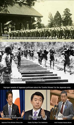 "개항 후 일본은 메이지유신을 통해 근대화에 성공했다. 이후 제국주의 일본은 대륙 침략과 식민지 개척을 위해 온 국민을 동원해 전쟁 준비를 했다. 한일병합 조약을 통해 아시아 침략을 본격화한 일본은 1931년 만주사변을 시작으로 중일전쟁, 태평양전쟁 등을 통해 아시아 각국에 대한 침략을 진행했다. 심지어 일본은 아시아를 넘어 미국까지 공격했다. 그리고 파푸아뉴기니에 이르기까지 전선을 확대해 식민지 국민을 전쟁터로 몰아넣었다. 이 과정에서 전쟁 물자 운송을 위한 공사로 포로들을 학대하고, 가혹한 노등을 시키는 등 인권을 유린하기도 했다. 그리고 이 과정에서 무고한 민간인들에 대한 대량 학살을 서슴지 않고 진행했다. 731부대라는 특수부대를 조직해 유례를 찾아볼 수 없을 정도의 잔혹한 범죄를 저질렀다."