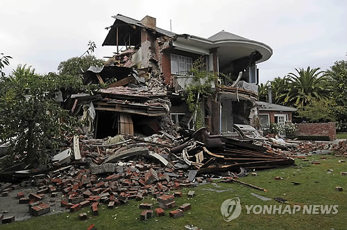 | △ 크라이스트처치 지진으로 무너진 뉴질랜드 가옥 (AP=연합뉴스 자료사진) |