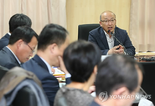 | △ 모두발언하는 문형표 장관 (서울=연합뉴스) 서명곤 기자 = 문형표 보건복지부 장관이 25일 오후 서울 중구 충무로 한국건강증진개발원에서 열린 중앙생활보장위원회 회의에서 모두발언을 하고있다. 2015.4.25 seephoto@yna.co.kr |