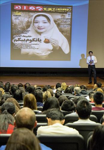 이날 특강은 지난해 12월 플러튼 캘리포니아 주립대(CSU플러튼), 지난 2월 리버사이드 캘리포니아대(UC리버사이드)에 이어 세 번째다. 특강 제목은 '강남에서 바그다드까지-새로운 외교 흐름의 확산'이다.