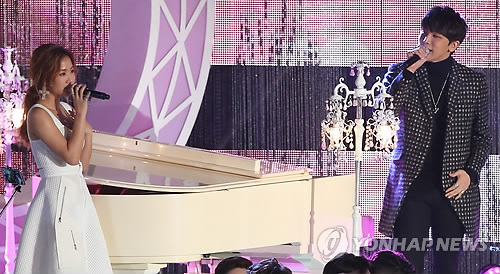 | △ 소유-정기고, 감미로운 썸 (서울=연합뉴스) 양지웅 기자 = 13일 오후 서울 송파구 방이동 올림픽공원 체조경기장에서 열린 '2014 멜론 뮤직 어워드'에서 씨스타 소유(왼쪽), 정기고가 화려한 무대를 선보이고 있다. 2014.11.13 yangdoo@yna.co.kr |