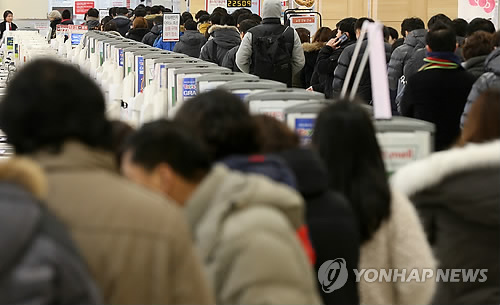 | △ 서울 시내 한 대형마트 완구 코너에서 아이에게 줄 장난감을 사기 위해 줄을 서서 기다리고 있다. (연합뉴스 자료사진) |