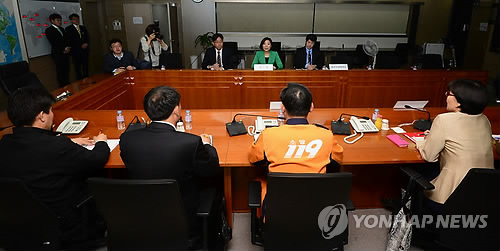 | △ 네팔 지진사태 관련 관계부처 회의 (서울=연합뉴스) 전수영 기자 = 지진으로 대규모 인명피해가 발생한 네팔 사태와 관련해 외교부와 국민안전처 등 관계부처 관계자들이 27일 오전 서울 세종로 외교부에서 긴급 구호대 파견과 관련한 세부 내용 등을 논의하고 있다. 이날 회의는 외교부 오영주 개발협력국장 주재하에 국가안전처, 보건복지부, 한국국제협력단(KOICA) 등 관계부처 과장급 인사들이 참석했다. |