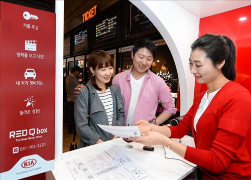 (서울=연합뉴스) 김윤구 기자 = 기아자동차[000270]는 고객이 영화를 보는 동안 차량을 정비해 주는 '기아 레드 큐 박스' 서비스를 시작한다고 27일 밝혔다.
