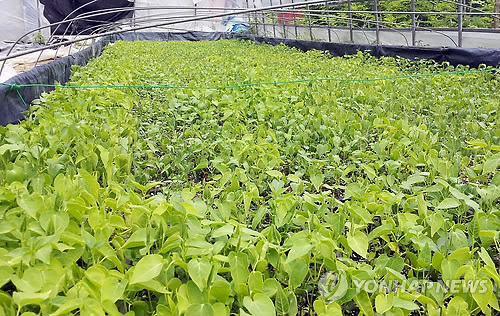| △ 옮겨심기 기다리는 백수오 육묘 (제천=연합뉴스) 전창해 기자 = 28일 충북 제천의 한 농가에서 재배 중인 백수오 육묘. 이 지역 백수오 재배농가들은 5월이면 육묘를 밭으로 옮겨 심어야 하는데 최근 불거진 '가짜 백수오' 논란에 판로가 불투명해지자 옮겨심기를 망설이고 있다. 2015.4.28 <<제천시 제공>> jeonch@yna.co.kr |