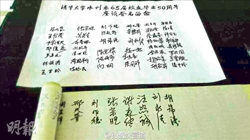 그러나 중국판 트위터인 웨이보(微博)에서는 후 전 주석과 부인 류융칭(劉永淸) 여사가 졸업 50주년 좌담 기념 방명록에 남긴 서명 사진이 나돌고 있다.