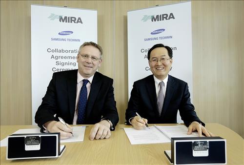 | △ 삼성테크윈-英MIRA 포괄적 협력합의서 체결식 (왼쪽부터 MIRA CEO George Gillespie, 삼성테크윈 김철교 대표이사) |