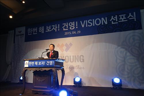 이형수 회장은 '사랑이 넘치는 사회를 만드는 창의적 건설'을 비전으로 제시하고 "국민들로부터 사랑과 신뢰를 받는 종합건설회사로 거듭날 수 있도록 노력하겠다"고 말했다.