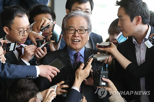 | △ '중앙대 특혜 외압' 박범훈 전 청와대 수석 소환 (서울=연합뉴스) 김주성 기자 = '중앙대 특혜' 외압 의혹을 받고 있는 박범훈 전 청와대 교육문화수석이 30일 오전 서울 서초동 서울중앙지검에 피의자 신분으로 소환되고 있다. |