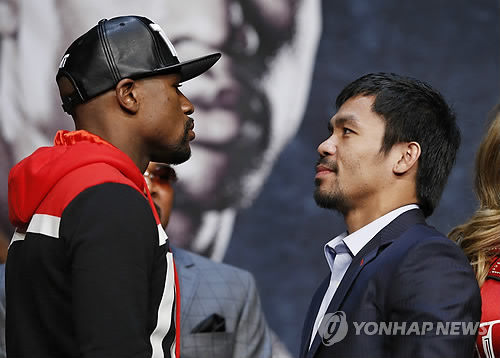 (서울=연합뉴스) 안홍석 기자 = '세기의 대결'을 앞둔 매니 파키아오(37·필리핀)와 플로이드 메이웨더 주니어(38·미국)가 드디어 대면했다.
