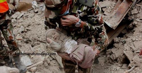 (서울=연합뉴스) 공병설 기자 = 생후 넉 달밖에 안 된 아기가 네팔 대지진으로 집이 무너지면서 잔해더미에 갇혔다 22시간 만에 극적으로 구조됐다.