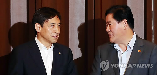 | △ 최경환 경제부총리 겸 기획재정부 장관(오른쪽)과 이주열 한국은행 총재 (연합뉴스 자료사진) |