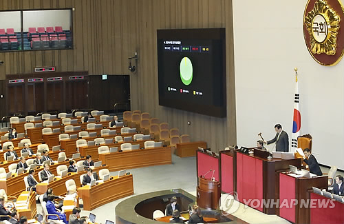 | △ 어린이집 CCTV 의무설치법 통과 (서울=연합뉴스) 이상학 기자 = 어린이집 CCTV 의무설치 등을 포함한 영유아보육법 일부개정법률안이 30일 국회 본회의에서 통과되고 있다. 2015.4.30 leesh@yna.co.kr |