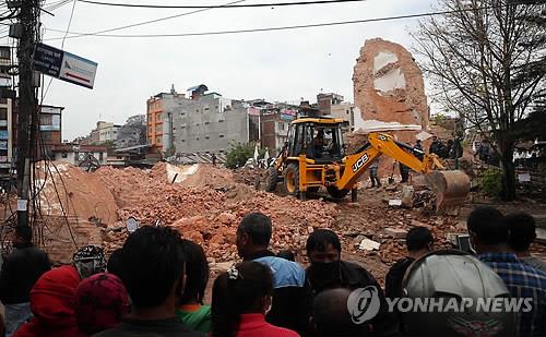 이번 지진으로 완전히 파괴된 유네스코 세계 문화유산 빔센(다라하라) 타워 주변도 모습이 달라졌다. 사흘 전만 해도 경찰 통제선도 없이 주민과 관광객이 몰려들어 오래된 벽돌을 앞다퉈 집어갔지만, 이제는 경찰이 사람들의 접근을 막아놓고 굴착기를 동원해 잔해를 정리했다.