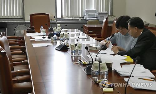| △ 언제쯤 시작할까? (서울=연합뉴스) 이상학 기자 = 공무원연금 개혁 특별위원회 법률안심사소위가 1일 국회 안행위 소회의실에서 의원들의 불참으로 진행되지 않고 있다. leesh@yna.co.kr |