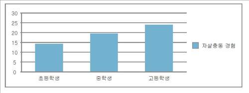 초등학생의 14.3%, 중학생의 19.5%, 고등학생의 24.0%는 자살 충동을 경험한 적 있다고 답했다.