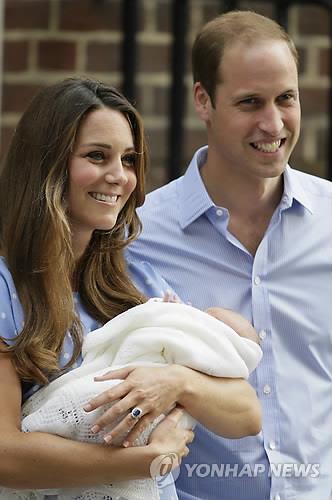 | △ 2013년 7월 첫 아들 조지 왕자를 안고 퇴원하는 윌리엄 왕세손 부부 (AP=연합뉴스) |