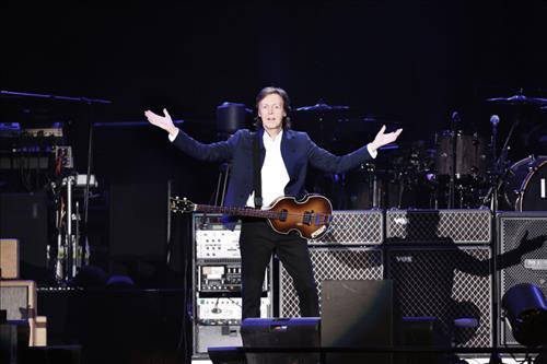 폴 매카트니는 무대 양옆에 설치된 대형 디스플레이에 자신의 과거 사진과 히트곡이 주마등처럼 흐르다가 갑자기 화면이 정지되며 기타 이미지가 비치는 순간 모습을 드러냈다.
