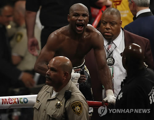 (서울=연합뉴스) 안홍석 기자 = 플로이드 메이웨더 주니어(38·미국)가 8체급 석권의 '전설' 매니 파키아오(37·필리핀)마저 꺾고 무패 신화를 이어갔다.