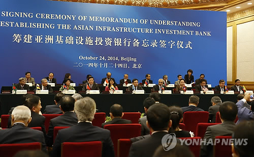 | △ 중국 AIIB 설립 양해각서 체결식 (EPA=연합뉴스 자료사진) |