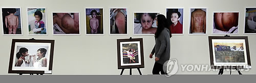 | △ 지난해 국회 의원회관에서 열린 아동학대 관련 사진전에서 시민이 전시물을 관람하고 있다. (연합뉴스 자료사진) |