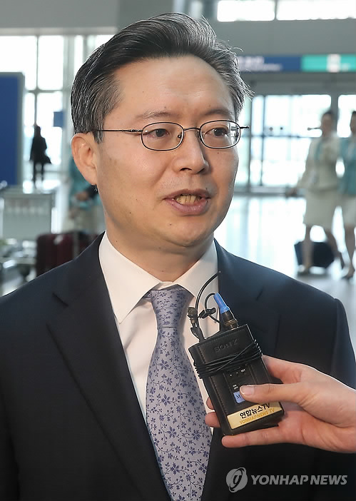 | △ 인터뷰 하는 황준국 한반도평화교섭본부장 (영종도=연합뉴스) 황광모 기자 = 우리 측 북핵 6자회담 수석대표인 황준국 외교부 한반도평화교섭본부장이 4일 오전 미국과 중국을 방문하기 위해 인천공항에 도착한 뒤 인터뷰를 하고 있다. 황 본부장은 먼저 4일 미국 워싱턴에서 미국 측 6자회담 수석대표인 성 김 국무부 대북정책 특별대표 겸 동아시아·태평양담당 부차관보와 협의할 예정이다. 이후 6일 중국 베이징을 찾아 중국 측 6자회담 수석대표인 우다웨이(武大偉) 중국 외교부 한반도사무특별대표와 회담을 갖는다. 2015.5.4 hkmpooh@yna.co.kr |