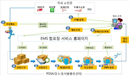 새로운 서비스가 실시되면 해외 소비자는 여러 인터넷쇼핑몰에서 원하는 물건을 구매한 뒤 배송지역을 국내 EMS 합포장 서비스 장소로 지정하면 우체국에서 이를 한꺼번에 포장해 해외 소비자가 있는 곳으로 보내주게 된다.
