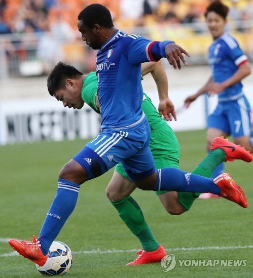 (수원=연합뉴스) 차병섭 기자 = 프로축구 수원 삼성과 베이징 궈안(중국)의 2015 아시아축구연맹(AFC) 챔피언스리그 G조 마지막 경기에서는 두 팀의 용병 데얀과 레오의 화려한 골 대결이 주목받았다.