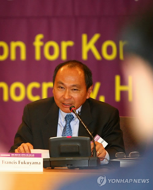 (서울=연합뉴스) 이상현 기자 = '역사의 종말' 저자로 유명한 프랜시스 후쿠야마 스탠퍼드대 교수는 6일 "남북관계에서 신뢰 구축은 오로지 교류 확대를 통해서만 가능하다"고 주장했다.