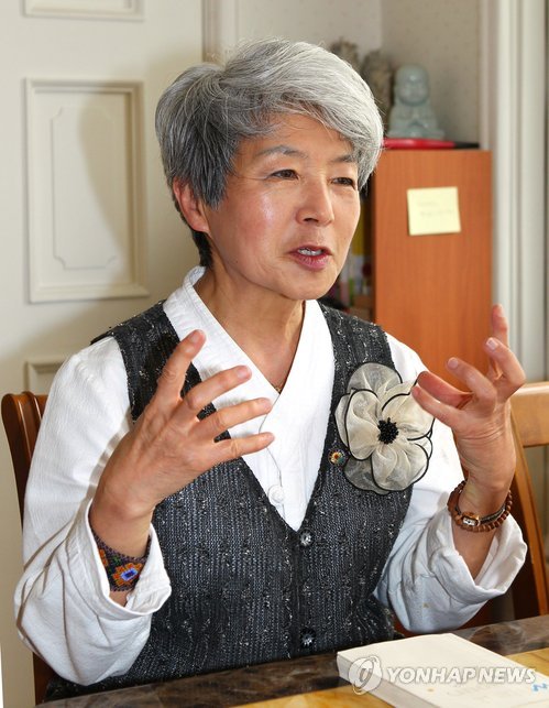 | △ 인터뷰하는 김반아 위민크로디엠지 대표 (서울=연합뉴스) 최은지 기자 = 6일 오후 김반아 세계 여성평화운동단체 '위민크로스디엠지'(Woman Cross DMZ) 국제공동대표가 서울 한남동 자택에서 인터뷰하고 있다. 2015.5.7 chamse@yna.co.kr |
