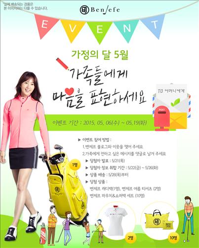 (서울=연합뉴스) 전준상 기자 = 골프웨어 벤제프는 가정의 달인 5월을 맞아 19일까지 '가족들에게 마음을 표현하세요!'이벤트를 진행한다.