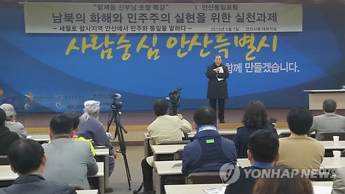 함 신부는 이날 오후 7시 안산시청 대강당에서 열린 안산통일포럼 주최 강연회에 참석해 '세월호 참사지역 안산에서 민주와 통일을 말하다'라는 주제의 특강에서 "세월호 참사는 민족사에서 순교의 의미가 있다"며 이같이 말했다.